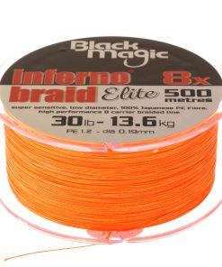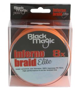 The high visibility 8-carrier Black Magic Inferno Braid Elite 8X is finer, smoother and designed for superior casts. And what’s more it provides excellent strength for a low diameter line.