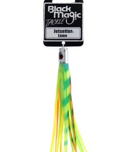A great choice for the serious fisho, the Black Magic Jetsetter Lures is designed to catch more fish and win tournaments. The bubble trail and sonic vibration set up by the Jet coupled with the double vinyl skirts will attract predators from afar. Skippies, Albacore, Kingfish, Mahi-Mahi, Kahawai and Yellowfin won’t be able to resist. Its head is precision machined from solid brass stock and the ‘jet’ is drilled and polished individually. The head’s weight ensures jetsetters hang in well even in sloppy areas. Choose from 7 colours, unrigged, single or double rigged to suit your fishing style. So if you’re ready to win, order yours now.