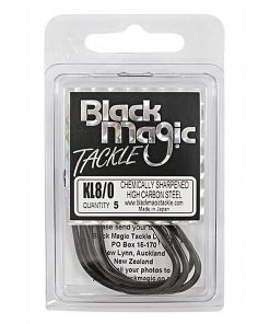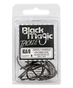 The Black Magic KL Black Series Circle Hooks are extremely versatile self-setting hooks that are used for rigging dead or live baits. A cross between a ‘longline’ hook and a wide gap or kahle. Leave the drag on and fish hook themselves. These hooks are perfect when fishing for Bluenose, Hapuka, Snapper, Tarakihi, Cod or Kingfish. These quality hooks are great for catch and release, as majority of the time the fish are hooked in the mouth and not gut-hooked. Also, as they are self setting hooks there is no need to strike. Perfect for surfcasting!