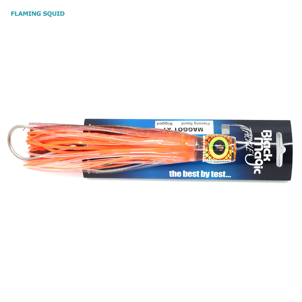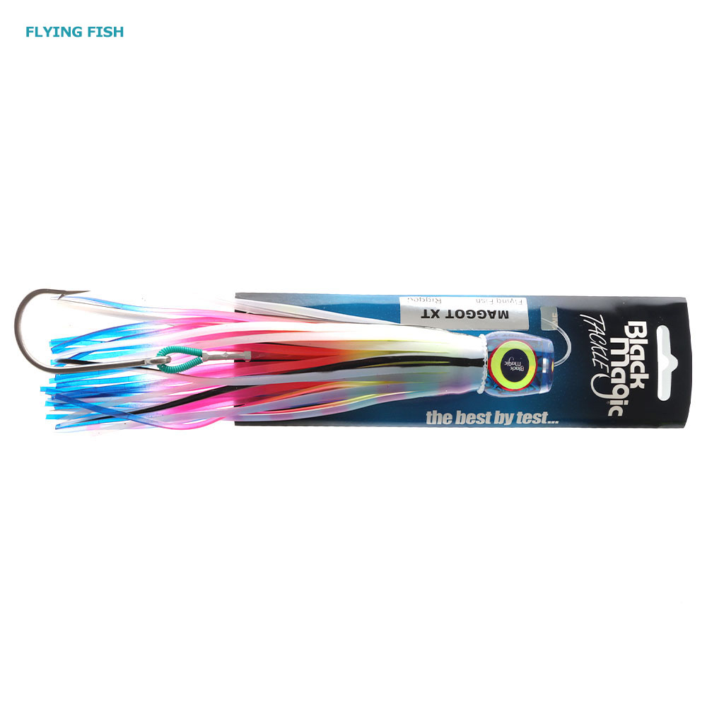 Expertly designed for catching Tuna and Marlin, the Black Magic Maggot XT Rigged Game Lure will drive hungry monster fish into a feeding frenzy. It features a 25mm pusher style head made from high impact materials that won’t chip or crack easily. With stunning, vibrant colours and silver/green reflective eyes, this incredibly attractive lure is irresistible to pelagic fish. It’s lethal on Tuna, medium-sized Marlin, Sailfish, Mahi Mahi and Wahoo. Get your Black Magic Maggot XT Rigged Game Lure today and choose from a variety of enticing colours.