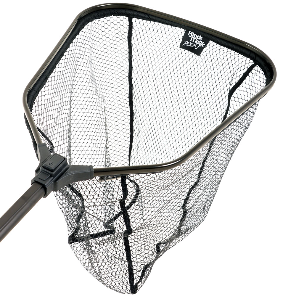 The Black Magic Retractable Handle Landing Net extends