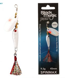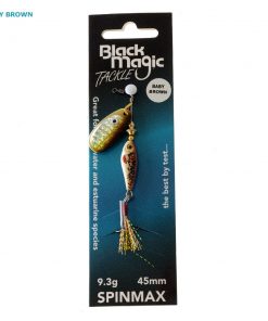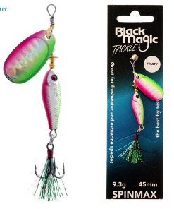The Black Magic Spinmax Spinner Lure features a harmonically tuned, fish-attracting spinning blade that sits on the nose of a lifelike, well-weighted fish body for streamlined swimming action. The blade spins on the drop and retrieve to create flash and vibrations enticing fish from afar. The lure’s design also allows for greater casting distance and quick retrieves in fast-flowing rivers and streams as well as slow retrieves in deeper lakes or rivers. The Spinmax Spinner is an effective lure for both trolling and casting when targetting a wide range of freshwater and estuarine species.