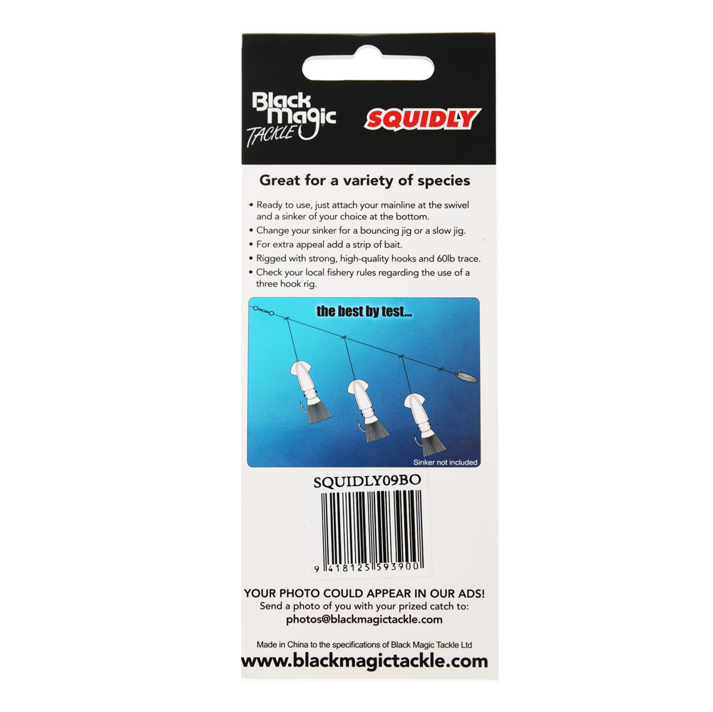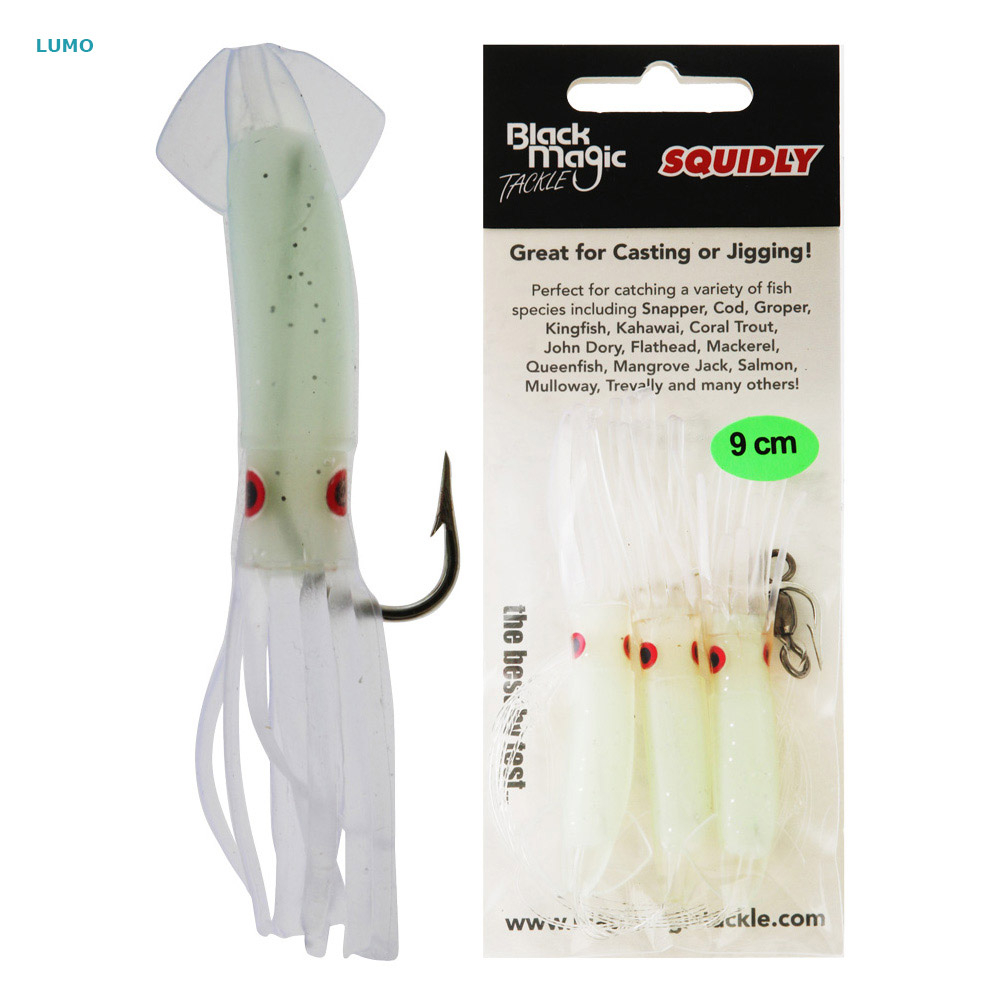 - Each squid is rigged on a strong hook to suit tougher fighting